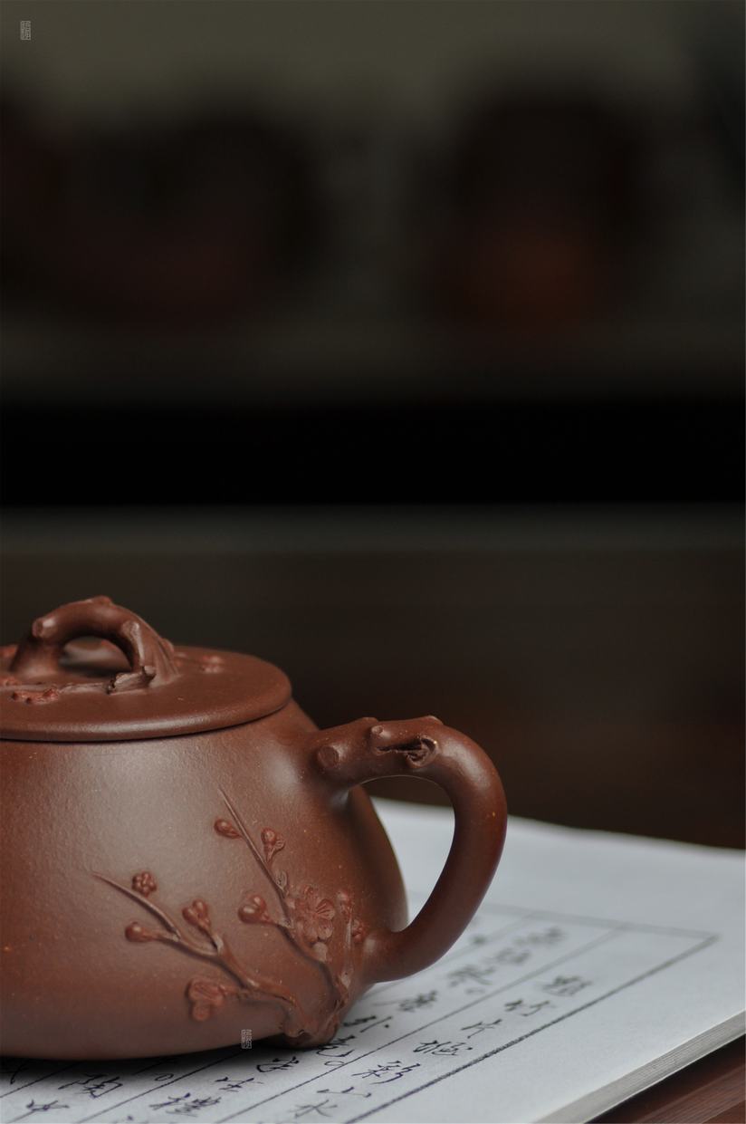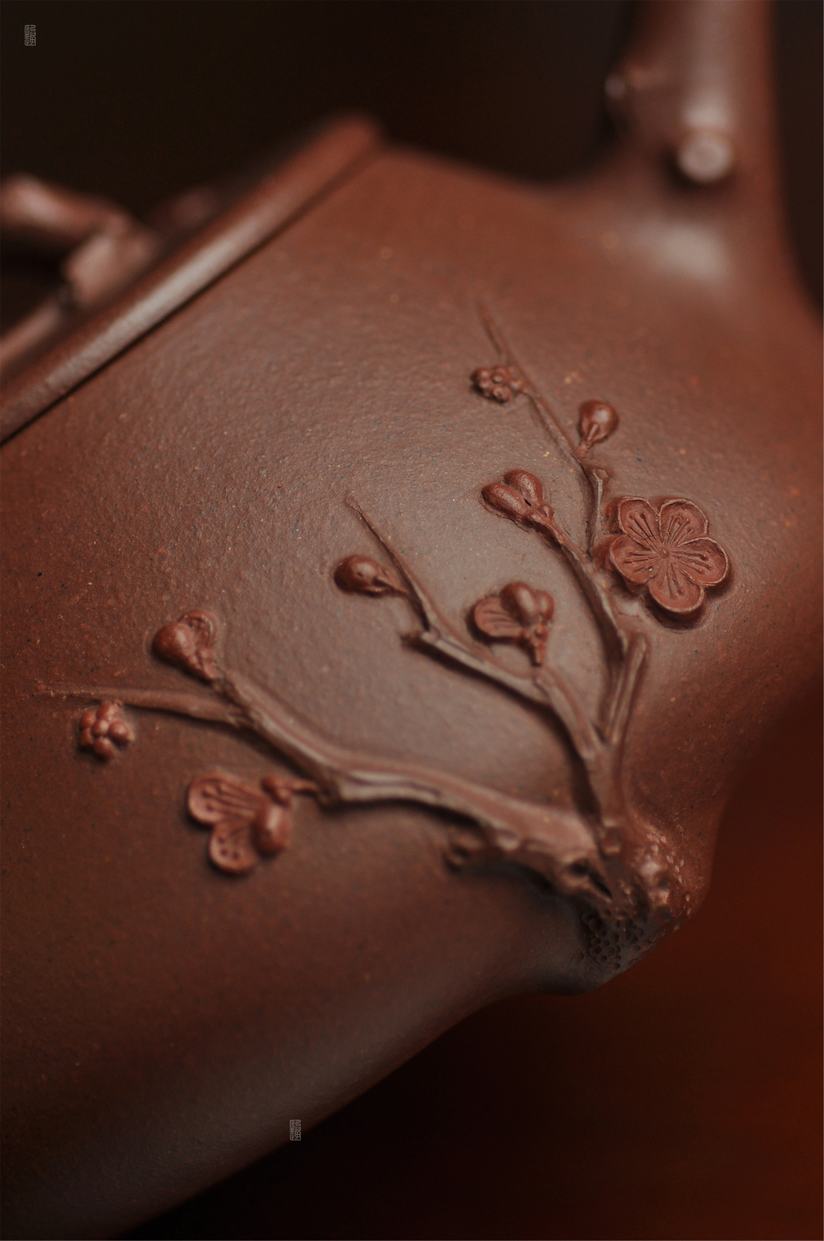 梅花自古象征耐寒傲雪、坚韧不屈的文人风骨,恰合茶人追求的淡泊清雅心境。作者以梅入壶,让这把器具不仅是泡茶的实用之选,更承载着对生活的美好期许,终成茶案上形、质、意三者兼备的难得雅器。